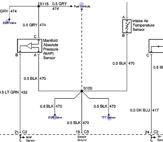 Based on those codes alone, I'd suspect you have an OPEN in circuit 470. I attached the best example of S120 I could find in service info. That'd explain the circuit high code descriptions. Because the transmission connector and the fuel level connector are kinda a pain to reach, I'd start with backprobing the IAT and EGR position sensor ground pins, KOEO. A reading of less than 100mV indicates a good ground. A reading of 5V indicates an open.