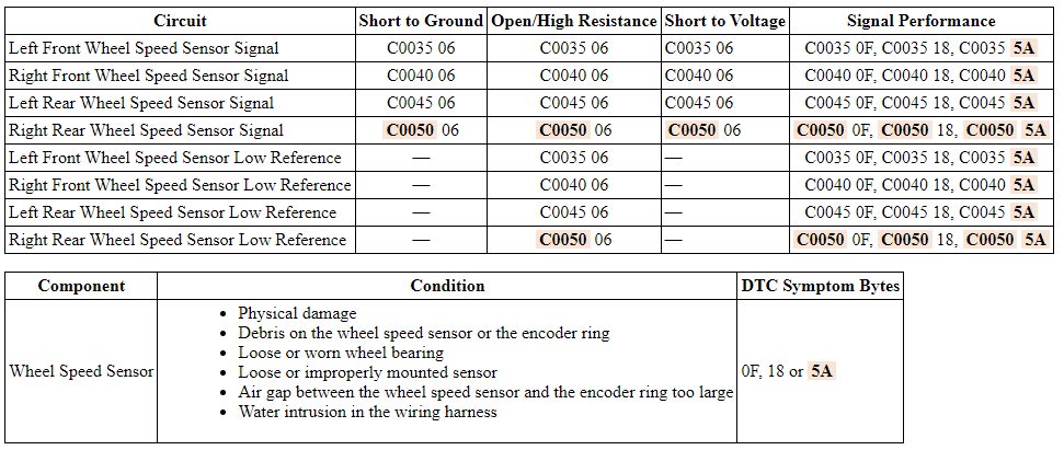 In any case, without ABS data, you are left with little troubleshooting ability unfortunately, beyond what the code set conditions can tell us.