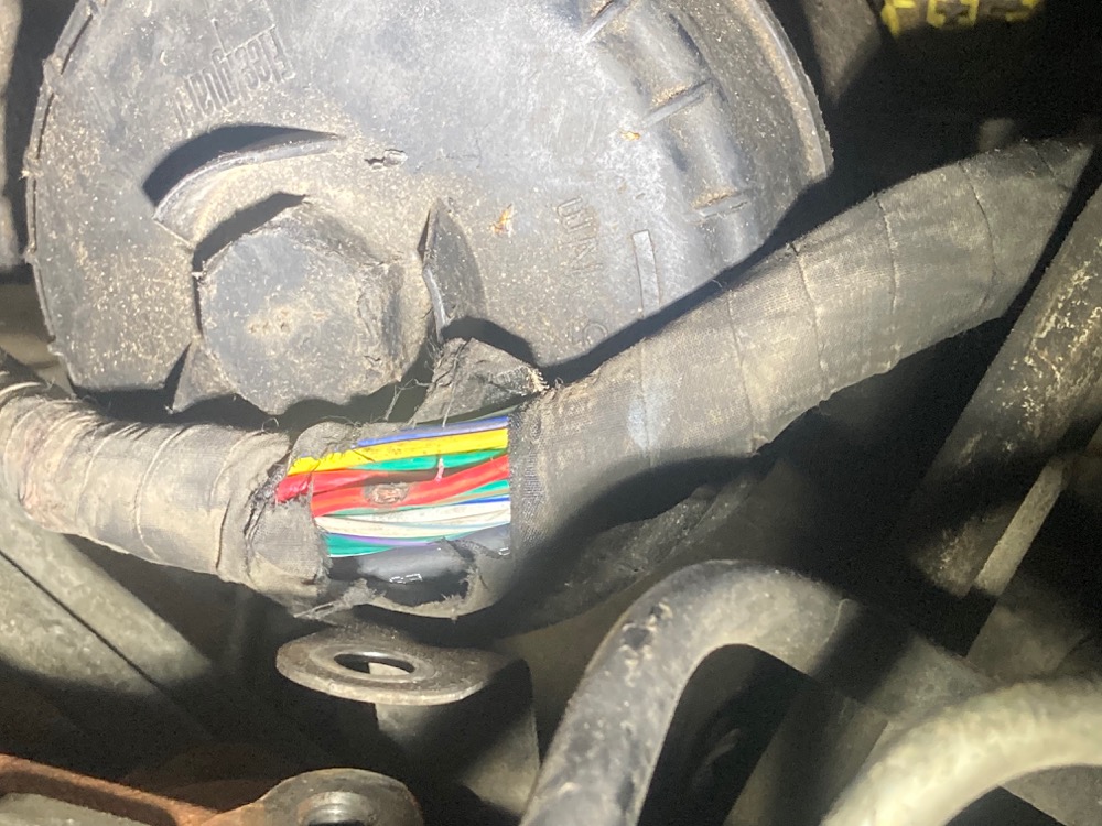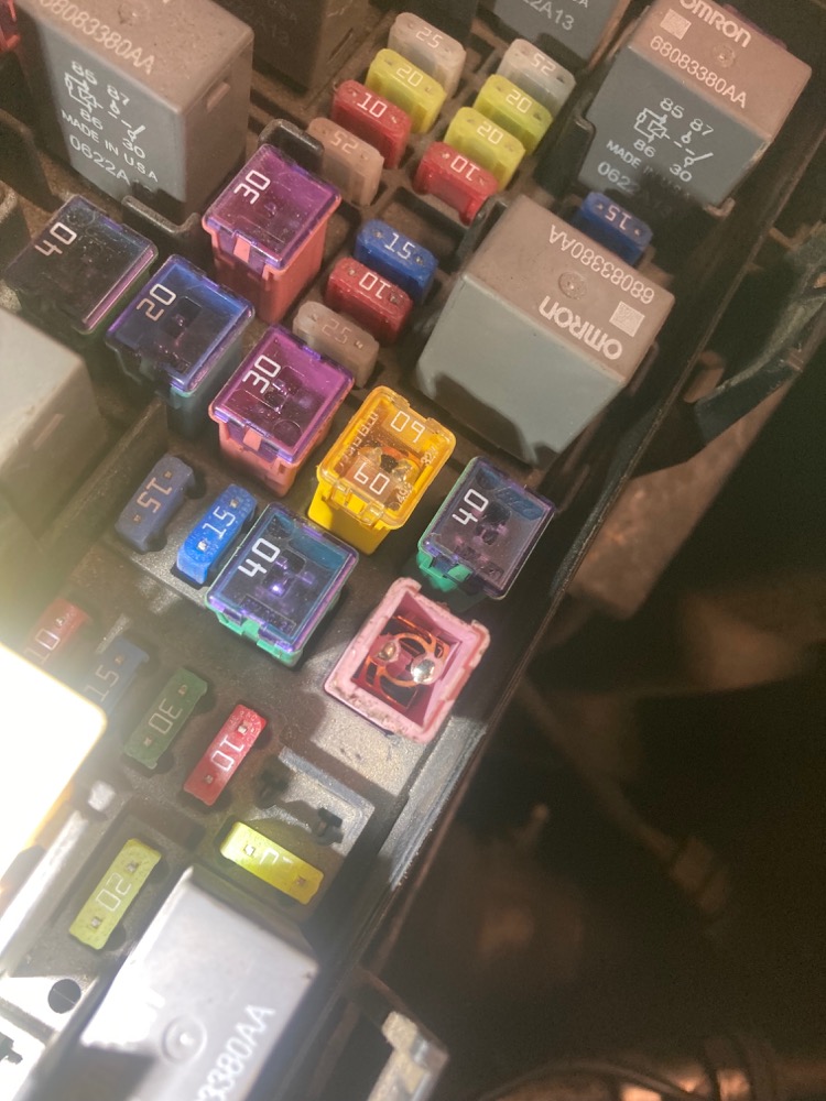 Had a Dodge 2500 Cummins come in today. Customer said they were driving and it just die, and wouldn't start. Pushed it in, had no com with the PCM and a bunch of other communication codes. Checked the wiring diagram for the PCM and noted the fuses. J3 a 30A J-case was blown. Put another one in and it blew immediately. (no I was not going to ship it without finding the short if it didn't blow). Unplugged the PCM and checked resistance to ground of the shorted wire (to make sure there wasn't in internal PCM short) nope, still shorted to ground. Plugged the PCM back in, and then all of the sudden... no short! Great... now I have to find it! I put the fuse back in and started wiggling the harness, eventually I heard a slight arcing noise above the fuel filter. Pulled the harness back and sure enough had rubbed through on a trans cooler line. Repaired the wire, wrapped the loom back up with Tesa tape, added a rubber bushing, and boom truck is on the road and I can sleep at night knowing it isn't gonna come back!