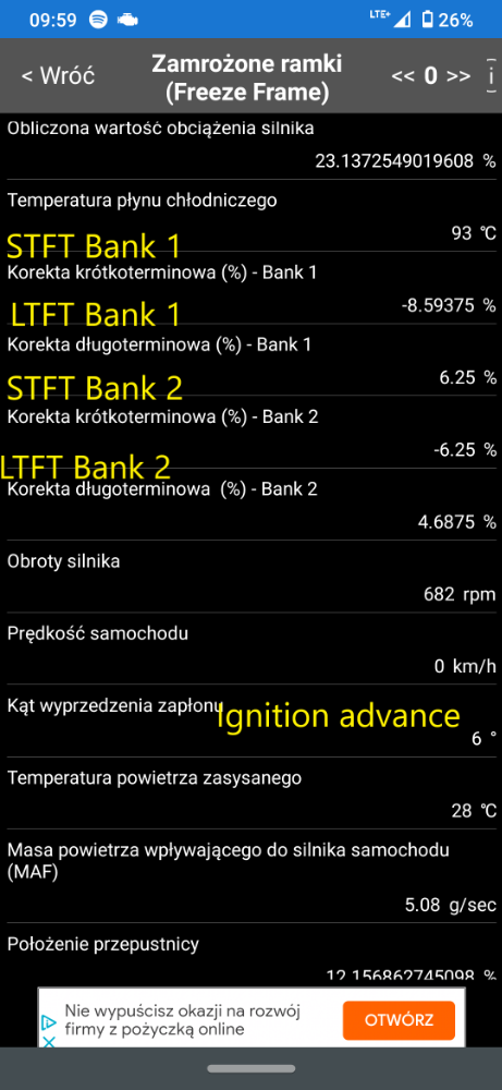 I clear the codes. Car adapts for the new values, but te code came back. Strange, because LTFT on both banks are in specification.
