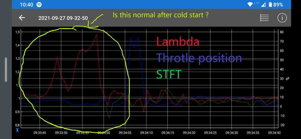 It can also be seen that each time the throttle is opened on a cold engine, the STFT drops.
