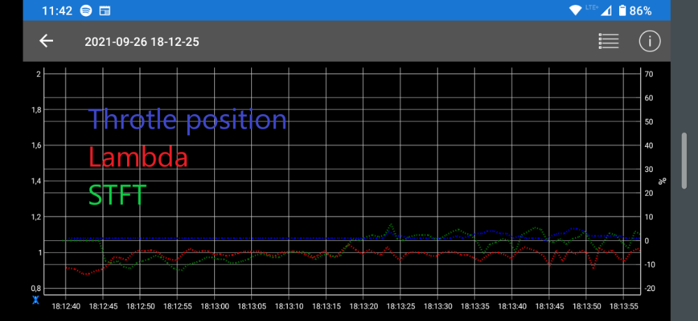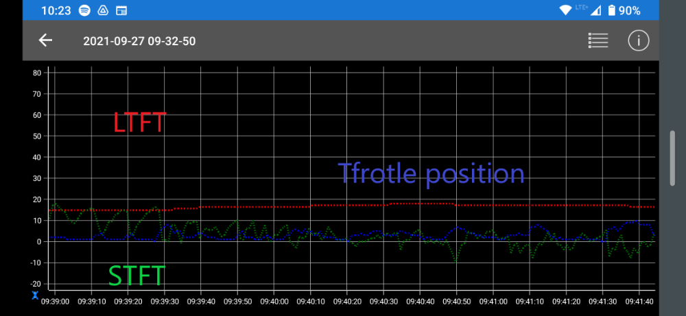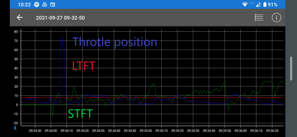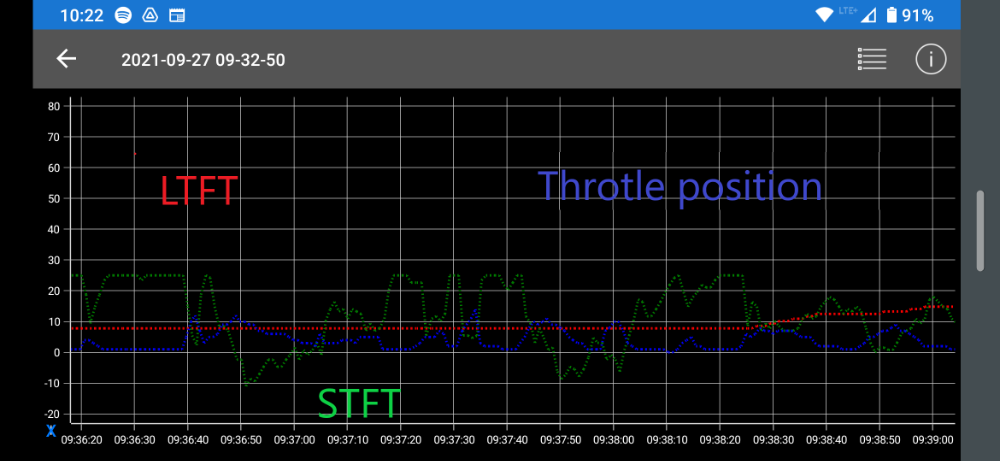 For the sake of clarity, today's commuting to work was on LPG, but on petrol the LTFT & STFT behavior pattern looks exactly the same, only the LTFT values on LPG are a few (2-3) % higher than on petrol.
