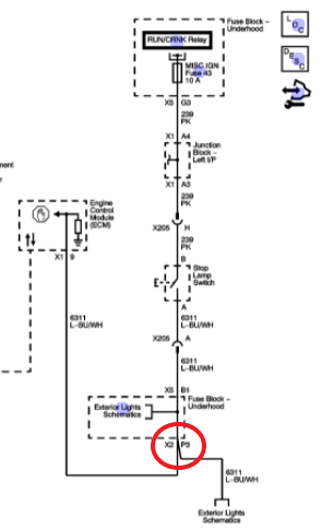 Since you've already bypassed the underhood fuse block, you're down to something in the exterior light circuit, the wire to the ECM or the ECM itself. Is P3 of X2 at the underhood fuse block accessible?