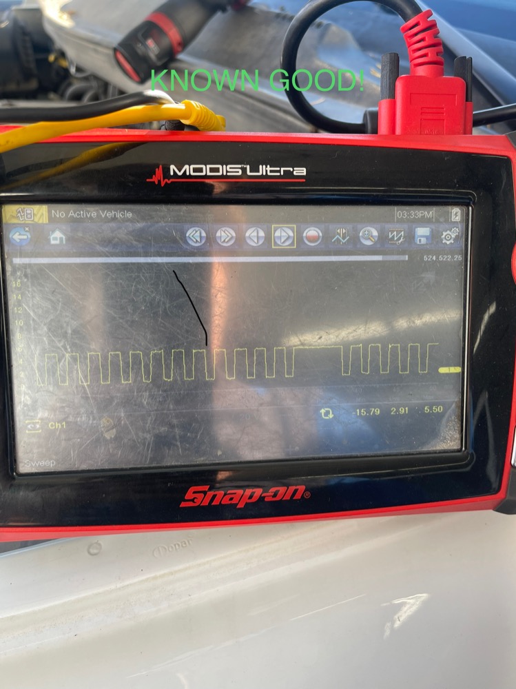 Hey y’all, got a 2001 Dodge Ram 2500 with the 24v 5.9 Cummins, keeps throwing a p0341. ECM CMP RPM on the scan tool is erratic and will fall out 200 RPMS or less below the ECM Inj Pump RPM. New to using a lab scope, trying to learn a thing or two. I have scope results from the CMP signal at the ECM on this truck, and a known good one from another 01 24v in our lot. Can anyone give me some insight on what’s going on, it looks like the some of the waves are not as sharp and smooth as the known good. Is this an acceptable scope result? Thanks in advance.