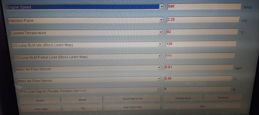 Now, pay attention at the scantool data, because I want to pinpoint another weird thing, and that is the fuel trim values (BLM Idle and BLM Partial Load).