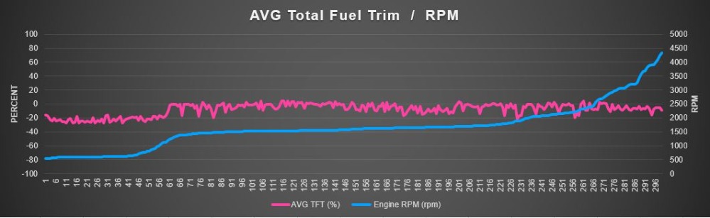 It's also important to note that fuel trims are dynamic, meaning they will change under different operating conditions. These conditions are important to note (warm idle, steady cruise, high load etc.) in order to get the full picture of the failure and to come up with an effective test plan.