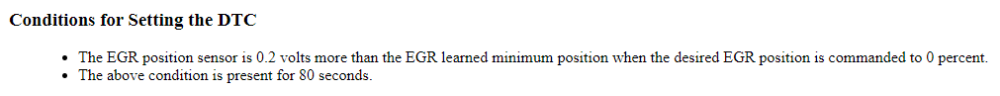 .74V on the EGR position signal is fine with the valve closed. The signal ground and the 5V reference are good, too. :unsure: How often, and under what conditions, does this code reset? This is the code set criteria for P1404: