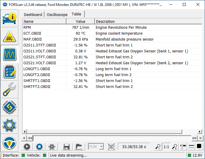 got me a small 2-channel PicoScope in order to find the cause for a rough idling engine with slightly fluctuating rpm on a Ford Mondeo MK3 1.8 (B5Y) Duratec HE 2006 (Europe). No DTCs, no misfire counter, PCM is a Visteon "Black Oak" with integrated EDIS Ignition System.