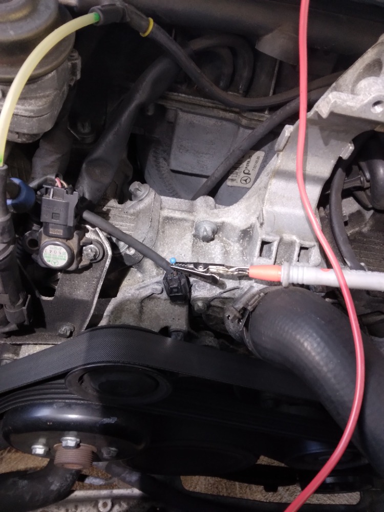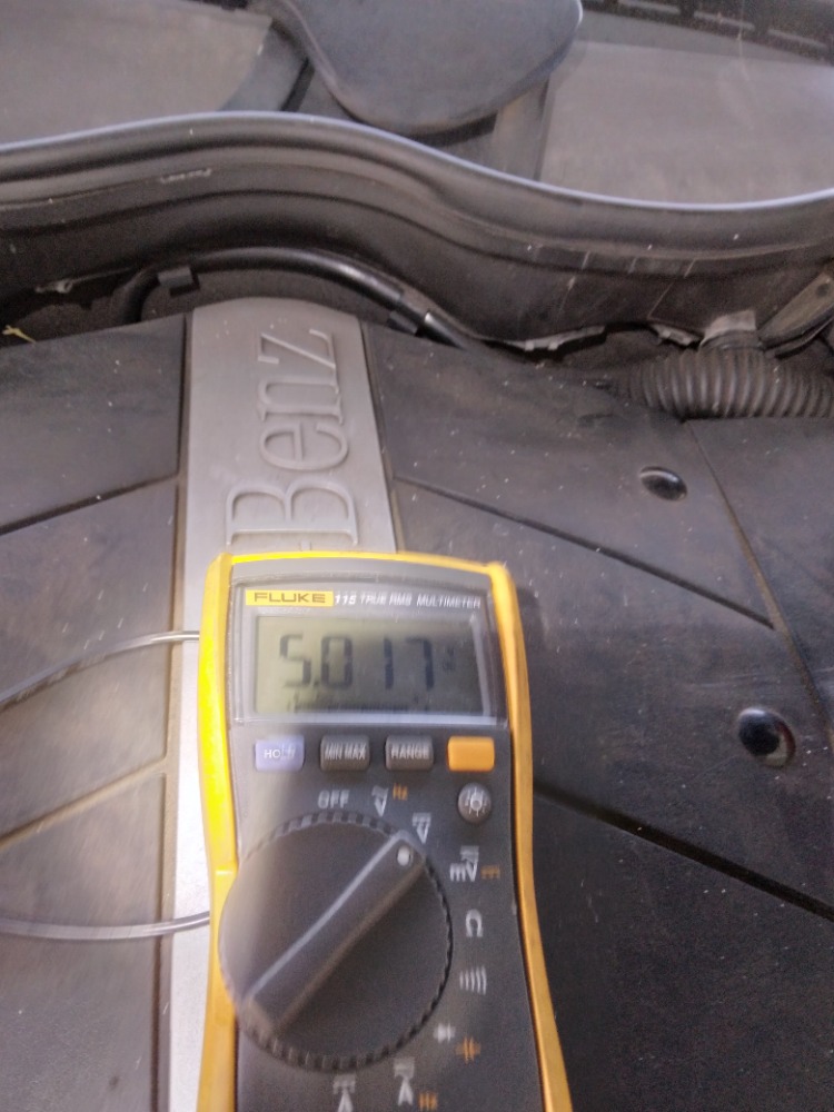 Another day of troubleshooting the P1007 ECT sensor 1 low circuit. I was not sure what to do first since yesterday. This morning I went to O'reilly auto parts to rent a scan tool. Unfortunately they don't have smart scan tools available. All they had was OBDII, a simple scan code reader to extract the trouble codes. As I couldn't find a one professional scanner to look for malfunction in the vehicle, I decided to go to the Mercedes Benz in Honolulu. I went to M-B of Honolulu this morning and bought an engine coolant temperature sensor. I was happy and confident that I could isolate if the sensor is replaced. I believe that the ECT sensor I got from the dealer it is new and it is the right part number for 2003 MB c240. I replaced the ECT sensor and erased the fault code. As a result, nothing has changed. The stored code P0017 ECT sensor 1 low circuit did not illuminates and still there is a malfunction in the engine cooling fan. The PCM does not want to be reset and check engine light stays "Coolant Visit Workshop". Consequently, I was made a bad call today. Earlier I should be check my 5 volt ref and signal ground to verify that I have circuit integrity.