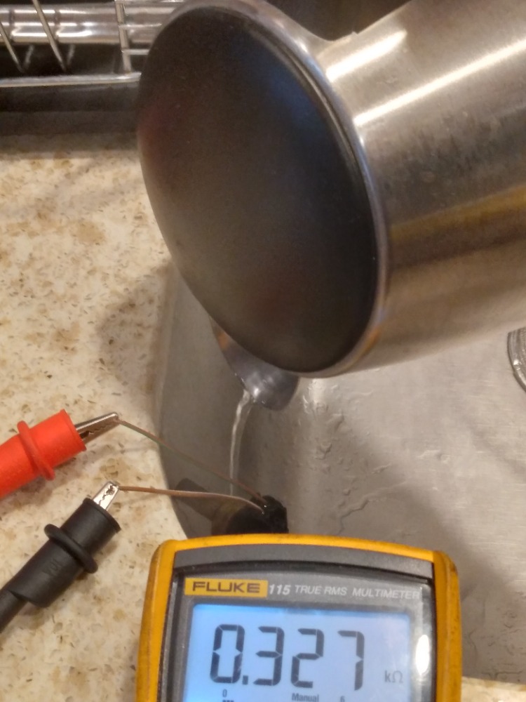 Because you told me a thermostat internal fault, so I spoke today with M-B of Honolulu to return the new ECT sensor under manufacture warranty. Sadly, cannot be return the unit item specifically electrical components and special order. So, I just ask the dealer politely what I should next, and the dealer told me I could take the car to them, and there they can test if the sensor defaulted. The problem is how do I take that car there because the ability to drive the car is not functioning properly. Unable to drive because of the malfunction situation causing to overheat the engine. I really feel the condition of the engine management control, such as the ignition timing and the idle speed are seriously looping and exhaust misfire. Anyway, I almost damned for blaming the dealer that is a faulty sensor but is not. I made a second measurement with the ECT sensor. What I saw was that my old sensor and the new one was just the same as resistant. The ECT sensor is active and have a correct amount of resistant. As stated in the Haynes Repair Manual, "The ECT sensor is a Negative Temp Coefficient (NTC) thermistor temperature sensitive variable resistor, the resistant of the thermistor decreases as the coolant temperature increases". In other words, the active resistant of the thermistor increases as the engine coolant temperature cold which exactly I did on the voltmeter that I took photos showing a resistant measurement. For that reason, the car issue is really big, different and is not a shorted ECT sensor. To me this is an indication of something going on with the engine computer tells as a not equally sharing a reference circuit design. Meanwhile, I always unplug the cooling fan when I do a voltage drop test on the P1007 ECT sensor reference 1 low circuit. I gently check the two wires in the ECT circuit with GRN/RD and BRN/WHT colors. The one that is my reference wire GRN/RD is 3.8 volts with a loaded circuit and 5.8 volt with unload circuit. Whereas my signal ground BRN/WHT is under 50 millivolts. Meaningful, I have a good 5-volt refs signal on the ground. My concern a short to ground, because my sensor ground wire is missing 100 millivolts in this leg of the circuit. A short to ground is my really concern which I need help of who has a better experience about a 5-volt reference 1 circuit.