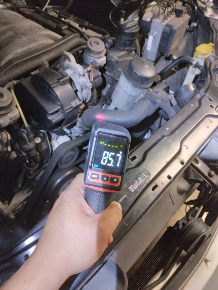 However, I looked at the car again last night because you told me to test thermostat for overheating. Granted, I started the car on idle. During warm up the engine stay in open loop. After three minutes later the engine is closed loop and the lower radiator hose is soft and cold and has a reading of 43 degrees Celius. While the upper radiator host is kind of hot with a little pressure and has a reading of 67-degree Celius. While, observing an engine thermostat when start to be activating and when it is fully open temperature, a watch timer it takes exactly 20 minutes to fully open the thermostat with engine coolant temperature 90–95-degree Celius. As a result, a radiator lower hose is hot 76-84 degrees Celsius and upper radiator hose is pretty hot reading with 84-86 degrees Celsius. To me this is a good thermostat control engine coolant temperature. As a mention above during warm up the thermostat possibly closed which lower radiator hose cold prior to prevent coolant from circulating through the radiator. As the engine reaching operating temperature, the thermostat job feel begins to open and allows a hot coolant to travel through lower and upper radiator hose. Although, the lower radiator hose supposed to be lowered than the upper hose by 10-degree Celius maybe because I have the fan unplugged. Where the engine fan automatically kicks on when the engine is hot a level temperature. Because cooling fan at maintaining the coolant temperature, can produce cooled before returning to the engine.