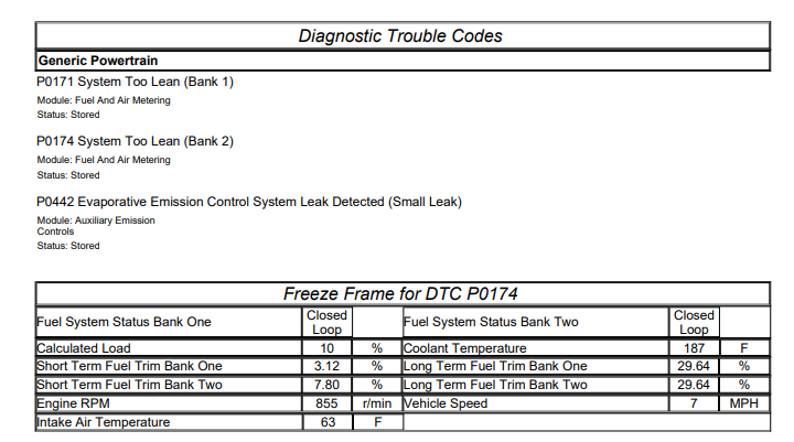 I realize this isn't the ideal way to show data but as I said, it won't let me upload attachments right now and I haven't figured out how to get recorded data to a graph in Auto Enginuity.