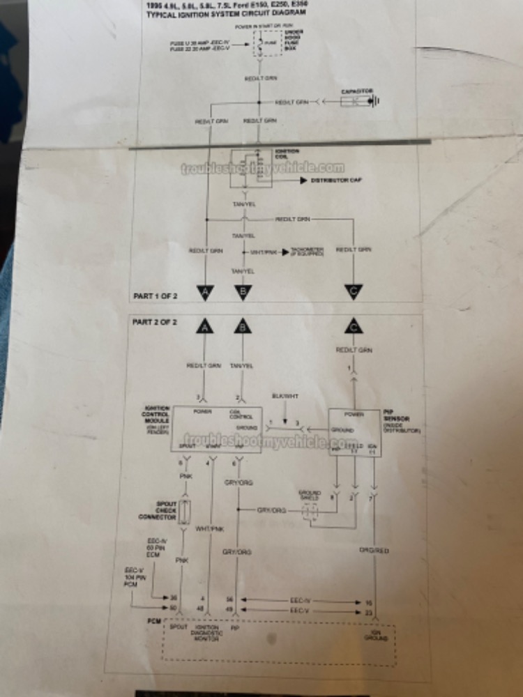 My 96 road e350 won’t start. I purchased it a couple of weeks ago and I’ve done some tests. Also I should mention it hasn’t run in a year. First symptom is the coil has 12 volts. When I test the spark with a spark tester it sparks constantly when I turn on the key but it’s a weak spark. No change when I crank it over. I changed the coil with a new one with no change. I can get the fuel pump to run by jumping it at the test plug under hood. Also no check engine light ever. It’s also got a new distributor. I tested the ICM and it’s getting 10 volt’s on the top wire and 4 to 5 volts when cranking so I assume the pip is ok. I’ve also cleaned all of the ground wires I could find. Is it my computer?
