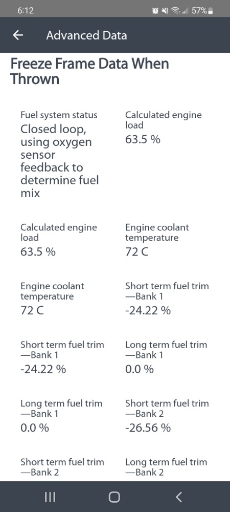 Thanks for the info. If the CEL returns I will definitely grab the freeze frame data. The FIXD app doesn't show tons of info but I will record it and share it here.