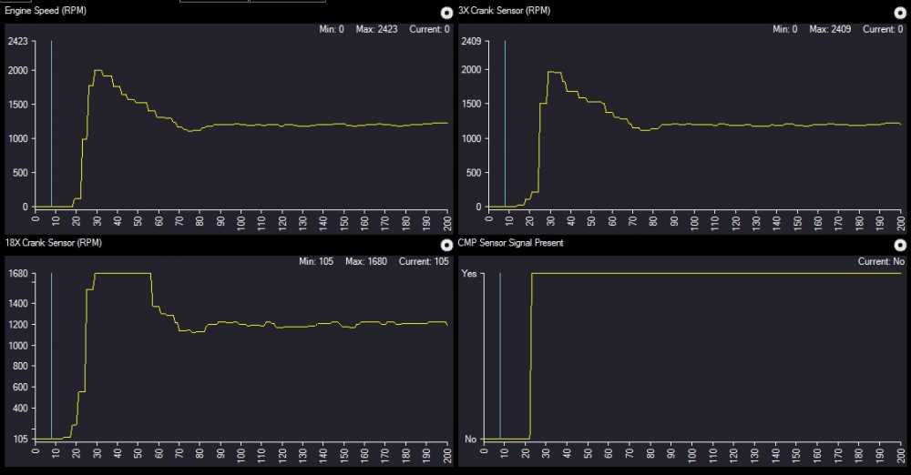 This one showed 105 RPM on the 18X signal with the engine off. :huh: Then I found a 2000 Bonneville, which showed something really strange: