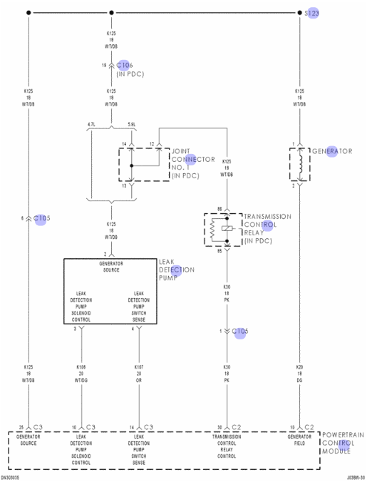 Looking at the diagram, it's the white/blue wire that supplies the alternator field circuit with steady 12V. The dark green wire is the ground side switched field control. So, depending on how you had your meter set up, it's understandable that you'd see erratic readings on the dark green wire. :silly: