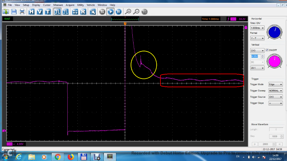 I was messing around with my 99 Nissan Almera ( Euro Sentra ) which is having some O2 and fuel efficiency issues and saw what looked like waves in the battery line of the injector waveforms: